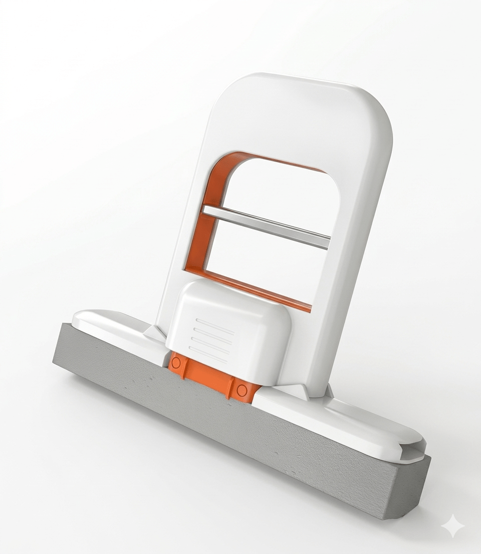 A compact, self-squeezing cleaning tool designed for effortless, mess-free surface maintenance.